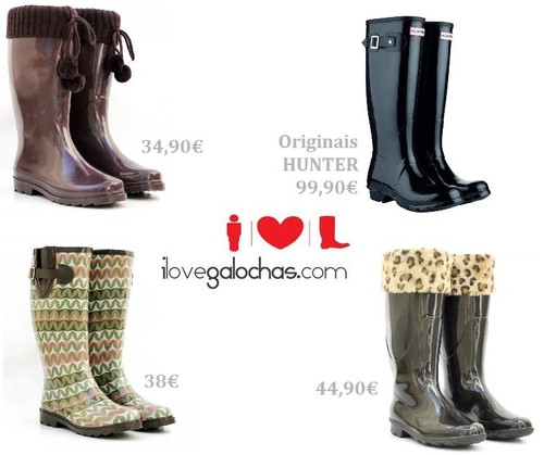 As galochas já eram uma grande tendência no último ano mas nesta estação regressaram em força. Muitas de vocês provavelmente não sabem onde comprar galochas bonitas e a preços acessíveis (já que as da marca Hunter são um pouco dispendiosas), assim sendo decidi divulgar aqui um site português: ilovegalochas.com onde podem encontrar galochas giríssimas e além disso não pagam portes de envio :)